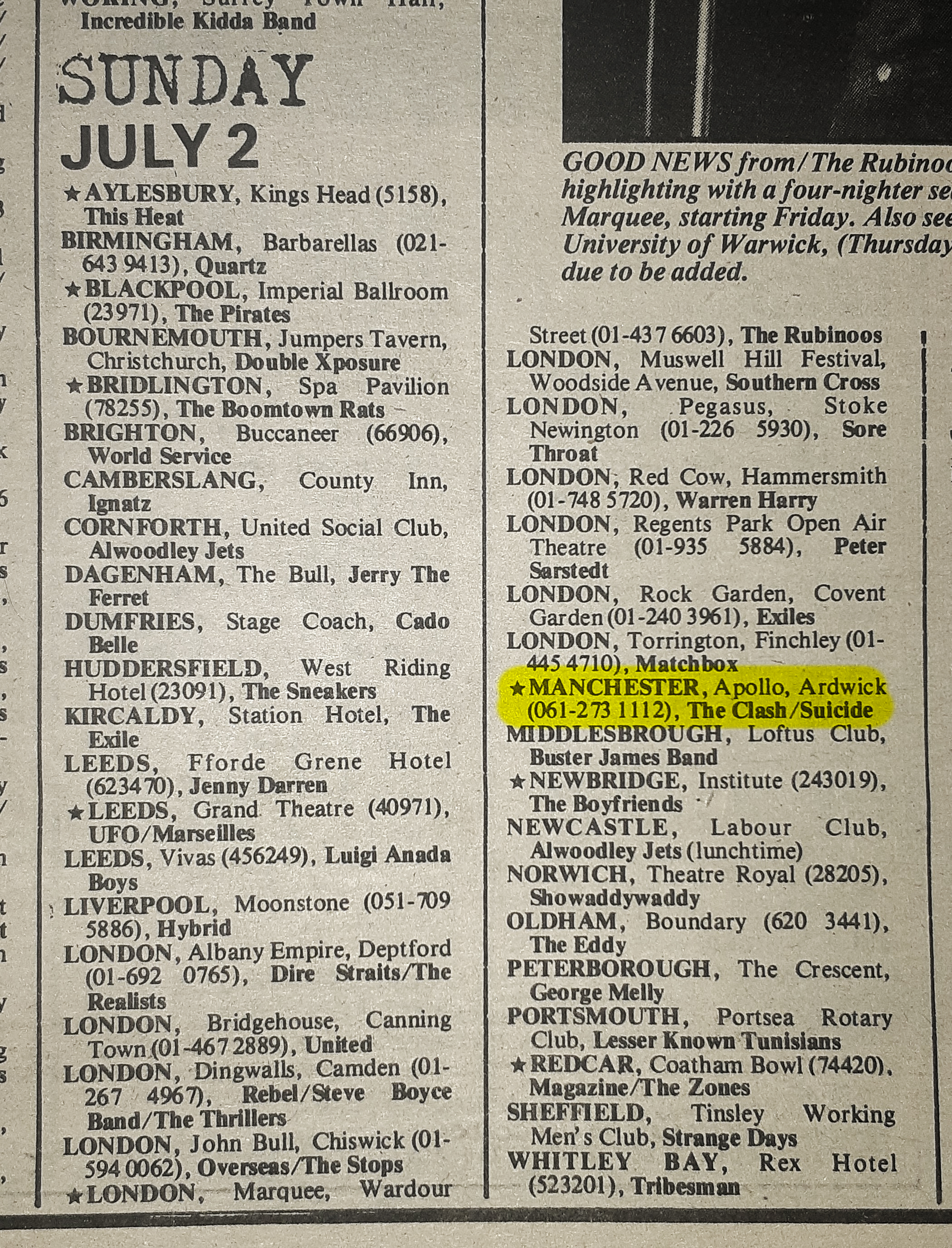 On Sunday, 2nd July 1978, The Clash perform at the Manchester Apollo
