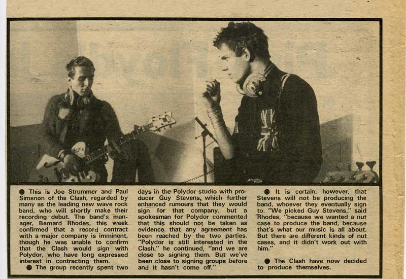 The group recently spent two days in the Polydor studio with producer Guy Stevens, which further enhanced rumours that they would sign for that company, but a spokesman for Polydor commented that this should not be taken as evidence that any agreement has been reached by the two parties. "Polydor is still interested in The Clash," he continued, "and we are close to signing them. But we've been close to signing groups before and it hasn't come off."