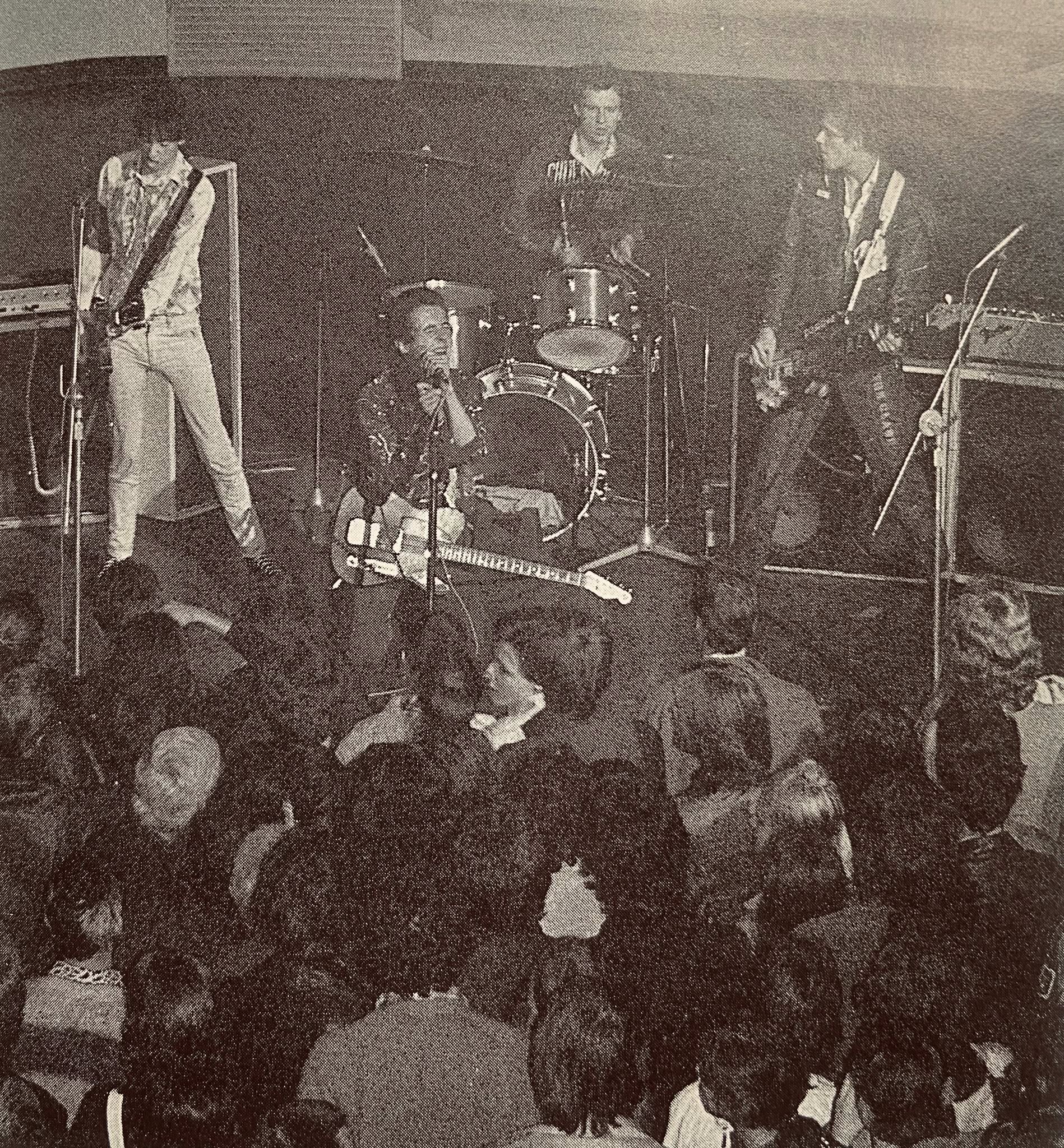 First time I saw The Clash was at their first out-of-London gig at Leighton Buzzard’s Tiddenfoot Leisure Centre, about an hour's drive out of London. The hall was like a large hotel lounge, which encouraged the crowd to drape itself over the seating.