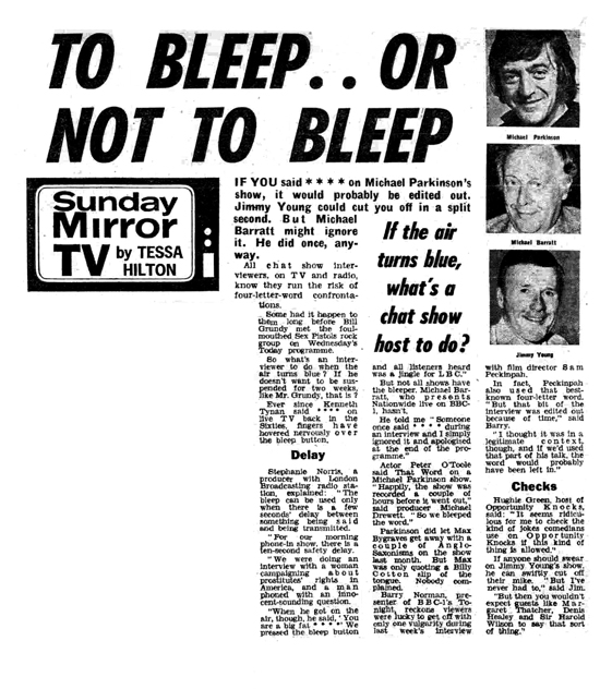 Meanwhile Grundy, the interviewer on the programme, was taking a fortnight's enforced rest from broadcasting He said grimly: "There are two particular four letter words I object to at the moment—punk and rock."