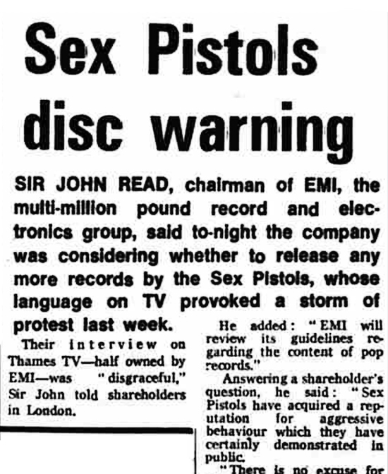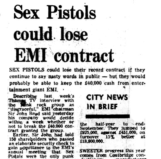 EMI had a two-year contract with Sex Pistols worth 40,000, signed in October.
