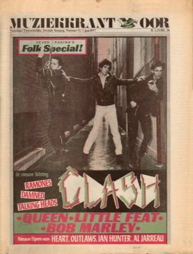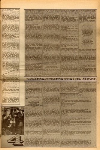 OOR. "Walkie-talkie me The Clash." Muziekkrant OOR (Dutch), no. 11, 1 June 1977, 1 page