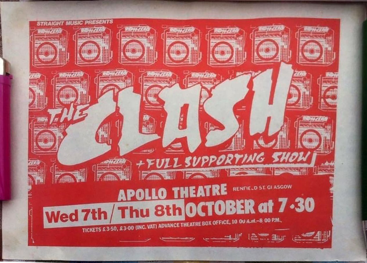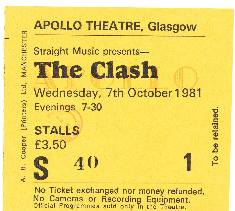 "..Our experience with The Clash seemed to be one that was mirrored with many other young bands wherever they played. When they had their "Clash stand at the Glasgow Apollo" in October 1981 we saw them from the audience on the first night and from the stage on the second.