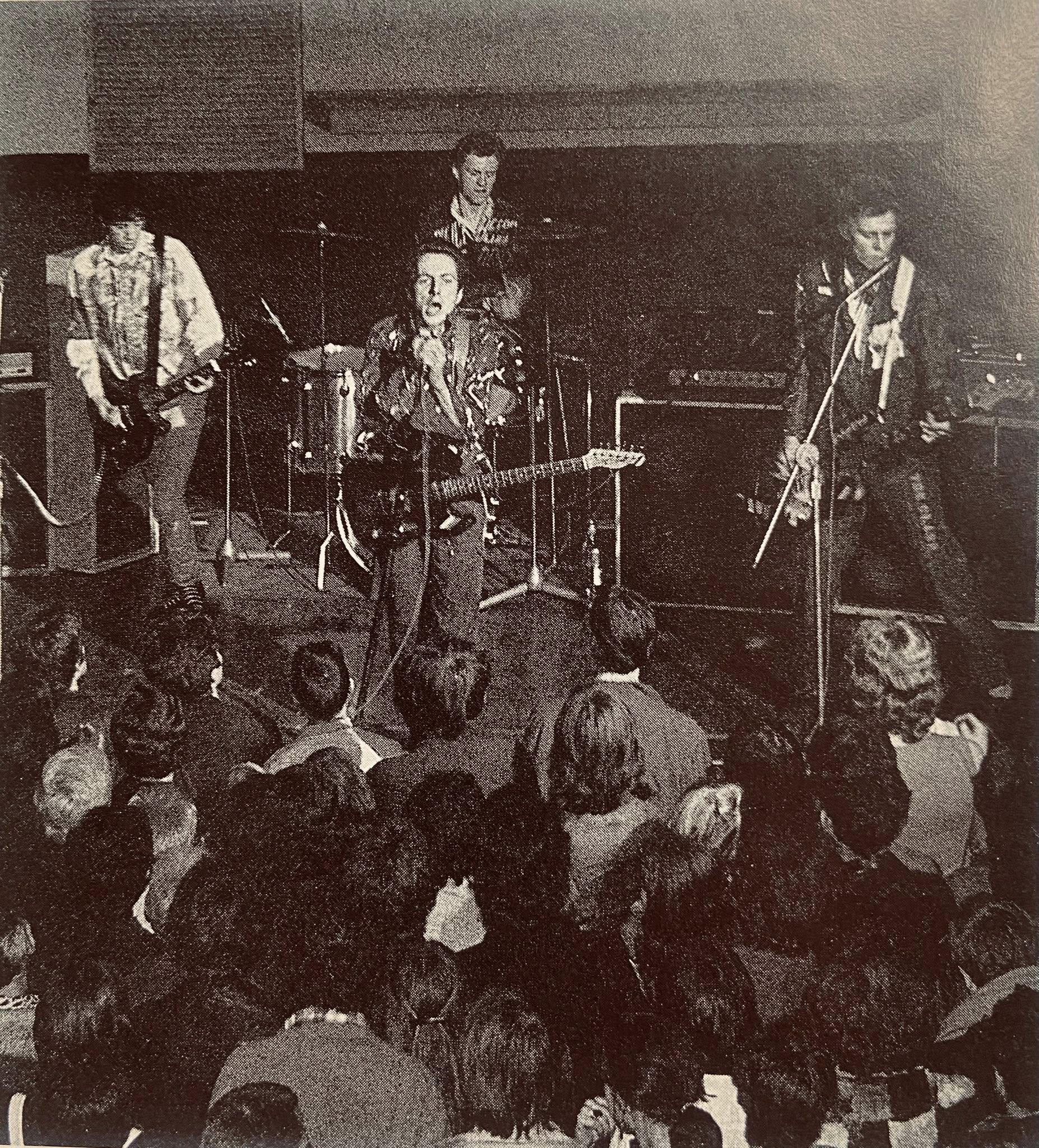First time I saw The Clash was at their first out-of-London gig at Leighton Buzzard’s Tiddenfoot Leisure Centre, about an hour's drive out of London. The hall was like a large hotel lounge, which encouraged the crowd to drape itself over the seating.