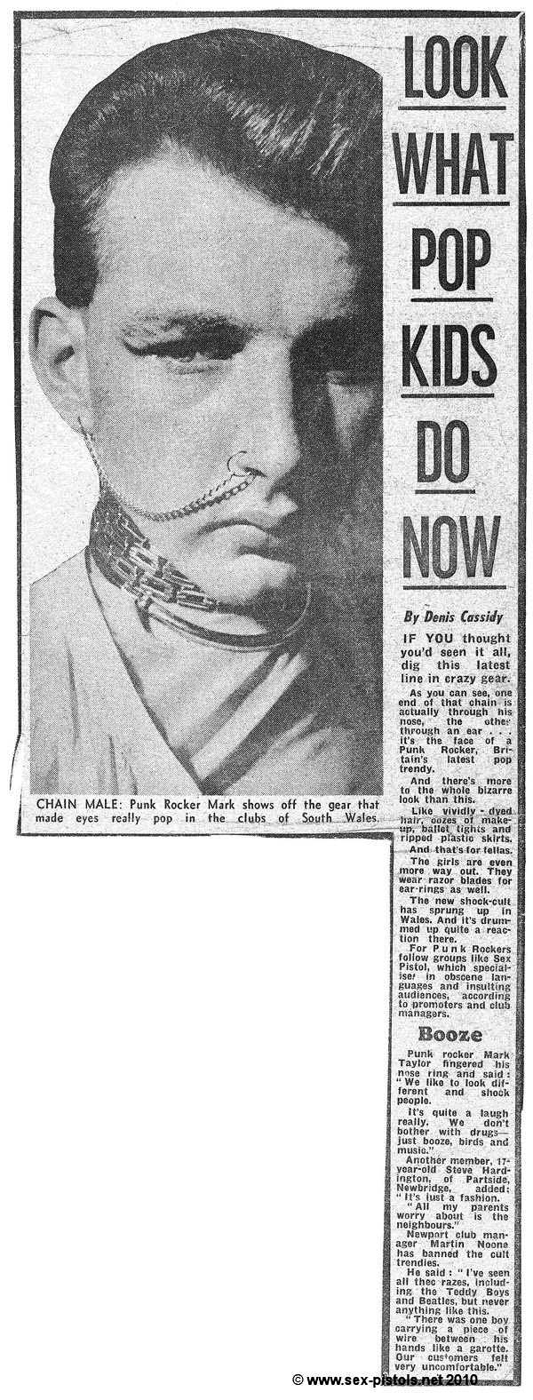 As you can see, one end of that chain is actually through his nose, the other through an ear ... it's the face of a Punk Rocker, Britain's latest pop trendy.