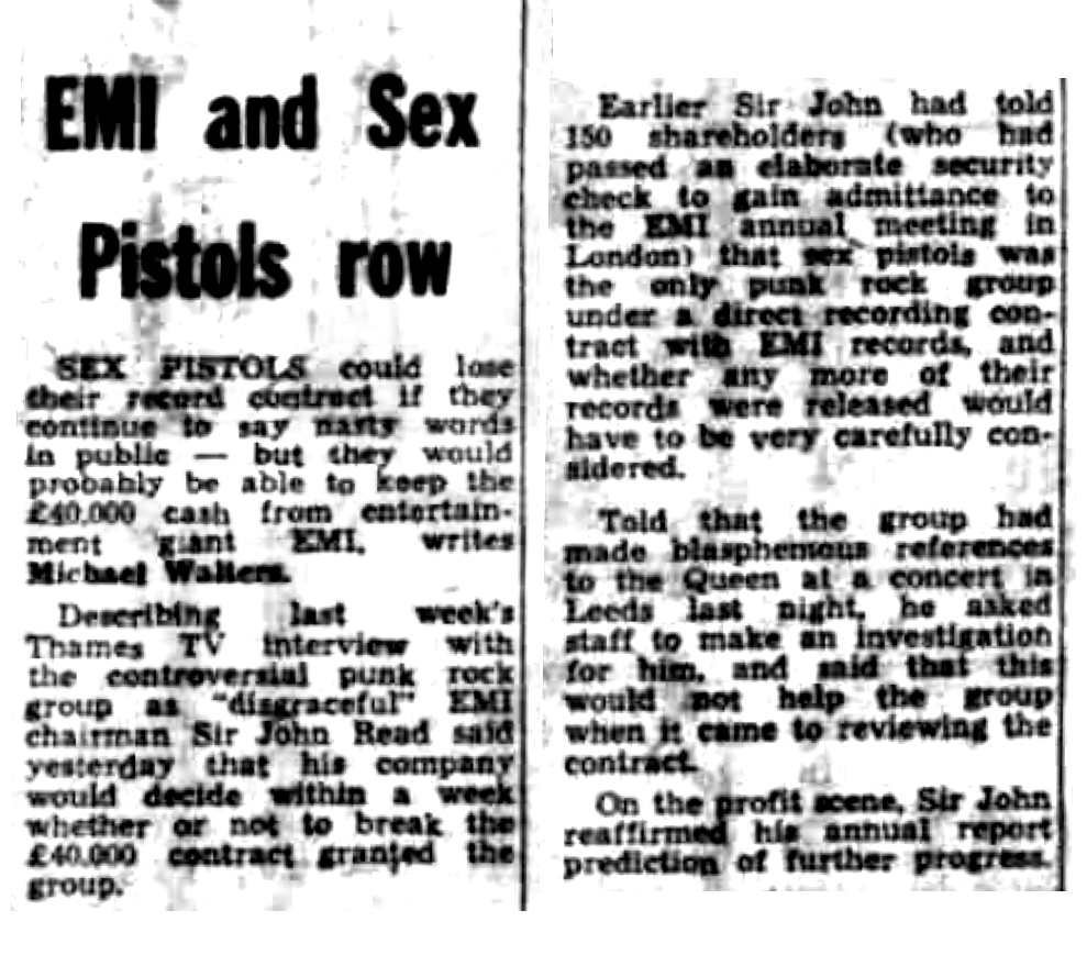 EMI had a two-year contract with Sex Pistols worth 40,000, signed in October.