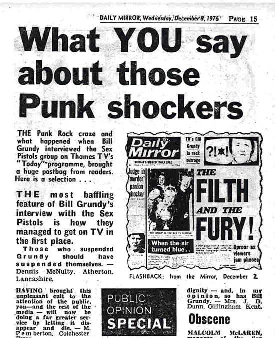 As Punk Rockers we were disgusted at the way you portrayed us in Thursday’s Mirror.