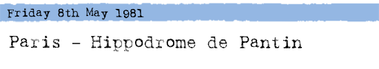The Hippodrome de Pantin was variously described as enormous and cavernous, with a 6000 plus capacity. It ceased being a major venue for Paris concerts in the mid 80's.