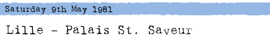 Lille, an industrial city in northern France was the centre of the coal industry at a time when both France and Britain had a coal industry. Thatcher of course was already working on that one! There is little known about this venue, which was used by other bands at the time but was then demolished or underwent a change of use.
