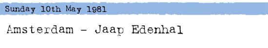 In 1981 the gigs at Lille and Amsterdam were supported by the Belle Stars (they were travelling on the tour coach which we bummed a ride on!), I think they did most of those European dates. J Heath
