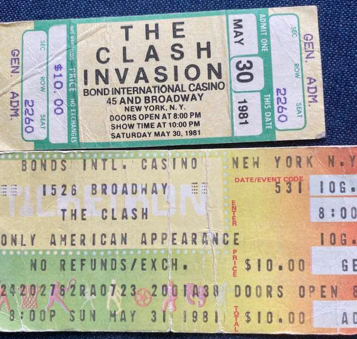greatest live band As for greatest live bands well i saw the clash in nyc when they sold too many tickets for bonds in Times Square and were obliged to play something like 2 weeks straight to honour all the tickets sold. This was the sandinista tour but the show covered every period and was quite simply amazing. Strummer got visibly pissed off when the crowd did not sing along with the obvious anthems but then you can’t expect perfection from a rock audience.Support that night was funkapolitain and the slits which blew my mind as i had no idea they were on the bill. Pearl harbour was the dj between sets.