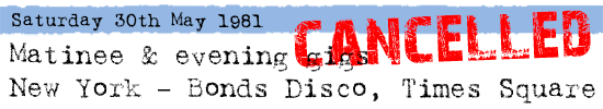 Ticket Fiasco Even before the end of The Clash's first concert at Bonds on the Thursday night the Fire trucks and Fire Marshall's were waiting outside. The Fire Marshall interviewed for Channel 2 said "Last night there were 3649" people in Bonds and imposed a closure order on the venue. The Plasmatics had recently played Bonds with 4000 people inside and blew up a car onstage. The truth as to why there was a problem when The Clash played has never been exposed but the widely held view was that it was a result of inter-club rivalry and a residency by the high profile Clash was too much for one or more of Bonds competitors. As Joe said, "…somebody paid somebody, who paid somebody, who paid somebody to come in and shut the building down" Mojo 96. After a meeting though with Fire chiefs and Bernie and Kosmo a compromise was agreed which allowed the scheduled show to go ahead on Friday night. There was a limit set of 1725 people and Ticketron tickets would be honoured first, as it was believed that most of these would have been bought by non New Yorkers, and thus would have had the furthest to travel and be inconvenienced the most. Those who had bought tickets direct from Bonds would have to wait for additional Clash shows slotted in at the expense of Gary Glitter and Stranglers concerts. This again all changed the following morning when the Building Commissioner stepped in and closed Bonds indefinitely - but that's a later story. Tonight's concert went off without a hitch although touts (scalpers) were charging $40 for the $10 Ticketron tickets. Boston Rock No.9 (link) gives a review of the concert. A hostile reaction to the support acts continued over from the first night with opening acts The Modettes and an unspecified group of rappers booed off. Mick dedicated Magnificent Seven to Grandmaster Flash tonight and perhaps spurred on by the hostile reaction by at least part of their audience to the new music they were now embracing, The Clash deliver tonight one of the best performances of the Bonds residency. If the conspiracy theory of inter-club rivalry and corrupt municipal practices is to be believed (and it was then and is still now widely accepted) then the agreement reached with the Fire Department on Friday 29th May which allowed that night's concert (and future ones) to go ahead, was presumably not damaging enough for those behind the action. Certainly we do know that just hours before the Saturday matinee for under 18's was to go ahead, the Building Department stepped in and effectively closed Bonds indefinitely stating the club was a potential death trap because of unsatisfactory fire exit arrangements. As TV news reports put it "2000 fans were turned away [from the Matinee] with the help of mounted Police" and "hundreds poured into the street shouting obscenities and blocking traffic". Some protesters were hit by billy clubs and one girl was arrested. This mini-riot (Don Letts filmed scenes) provoked extensive TV and radio coverage, the front page of the New York Post declared ""Clash" in Times Square" (which the band proudly had made up as T-shirts) and was the basis for the band members oft since repeated boast that it was the first riot in Times Square since Frank Sinatra's bobbysoxers in the late 40's. Kosmo writes in Bob Gruen's book; "What happened to The Clash at Bonds was that they got phenomenal media coverage… Up to this time the coverage of punk was safety pins and Sid & Nancy. So this was a very positive thing. I think the riot in Times Square did it..The record company were banned from the gig, because they'd done nothing to support Sandinista. So you've got the biggest media event going on and CBS have to say, "We can't help you, contact Kosmo at the Gramercy". They learned a lesson there. It put The Clash on the map for real, big-time brand recognition. We clawed our way into the Premier Division with that one" Although these events are covered in some depth by the various books on The Clash and magazine articles at the time, they do contain factual errors. The Clash could have (like many bands would have done) just walked away and refunded the ticket holders but that would have been contrary to The Clash's long established and proven track record of commitment to its fans. So The Clash instructed lawyers to seek court orders to overturn the ban and Kosmo and Bernie laboured to negotiate with the authorities. Both Saturday's planned performances though had to be cancelled as a solution proved hard to achieve. The persuasive power that achieved the breakthrough according to a number of accounts (and its such a great story it has to be true!) came ironically from the Building Commissioner's own daughters who were Clash fans and badgered their father into submission!
