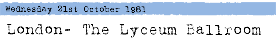 BUT! i must take issue with your comments on the lyceum 21/10/81 show - i think you're a little hard on it. i agree that joe is a bit subdued, but the tape runs slow. if you correct the pitch, the lethargic-sounding performances take a bit of a rocket up the arse and really come to life. it has that expansive, mysterious and explosive sound that the clash perfected in late-81.