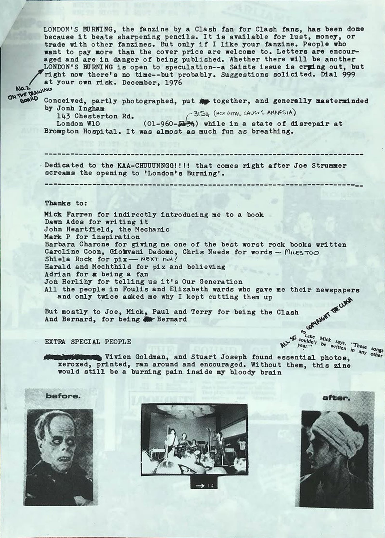 The week before the gig I got a string of phone-calls from Bernie Rhodes. This came about because I'd told Chris France, who booked the gig directly with Bernie [and paid him about £320], that I wanted to write a piece for New York Rocker, the US publication dedicated to punk rock. Bernie also knew I'd eventually be doing a Zigzag piece.