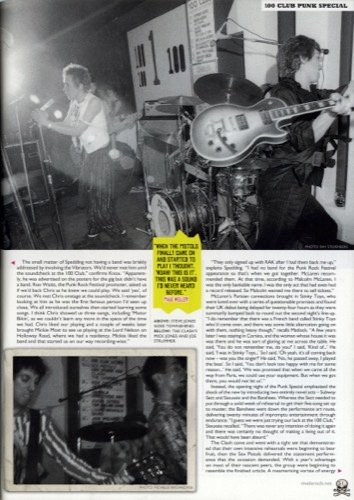 Contrast that with the Pistols who had been gigging for almost a year, had Malcolm and Vivienne successful in their own right, the SEX shop supplying their clothes, Boogie their soundman, Sophie in the office, and the whole Bromley Contingent following them around, providing a supportive entourage.