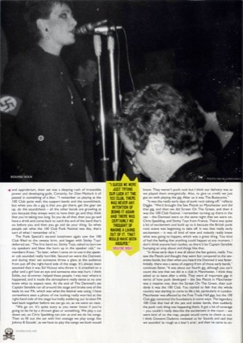 Having arranged to use some of The Clash's equipment, The Flowers of Romance started to set up onstage. But on seeing Sid wearing a swastika armband, Bernie Rhodes suddenly refused to let him use The Clash's drum kit.