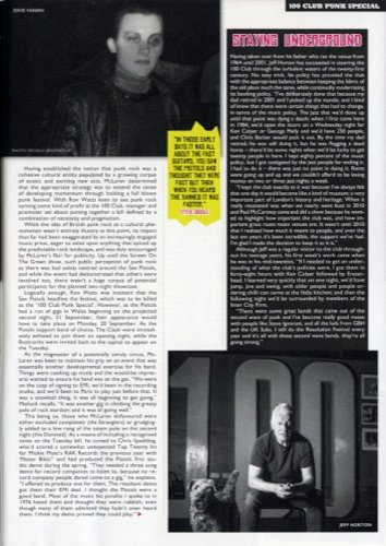 Next day, I drove the Subways' gear down to the 100 Club in my car as The Clash's equipment was being transported along with the PA and the Pistols' gear. We loaded through the back door and down the stairs of the familiar old club.