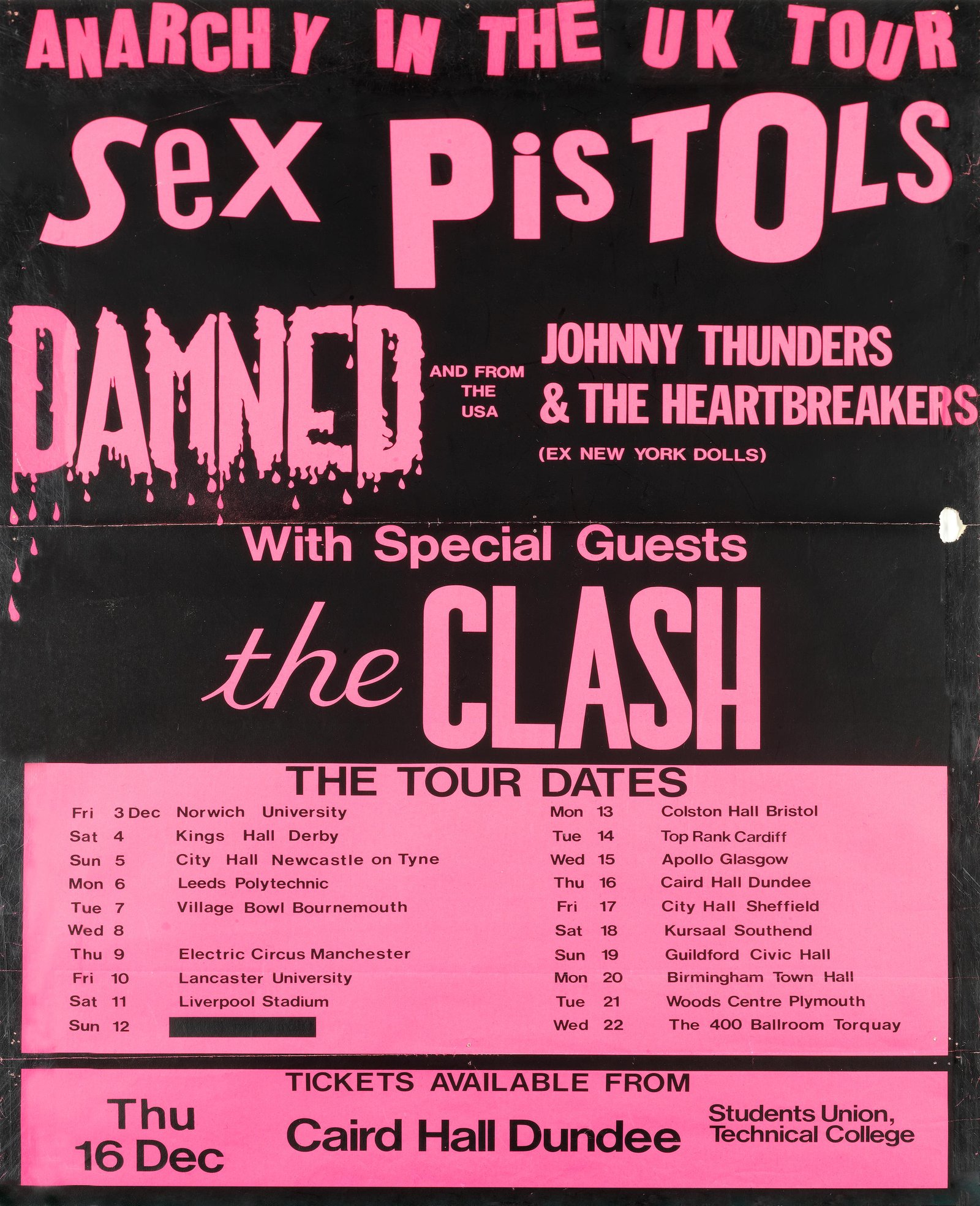 Then on 20th November 1976 the music press published an announcement that all of the acts had pulled out of the tour except the Sex Pistols. The tour was then revamped with Sex Pistols the headline act and support bands being Johnny Thunders & The Heartbreakers, The Damned and The Clash.