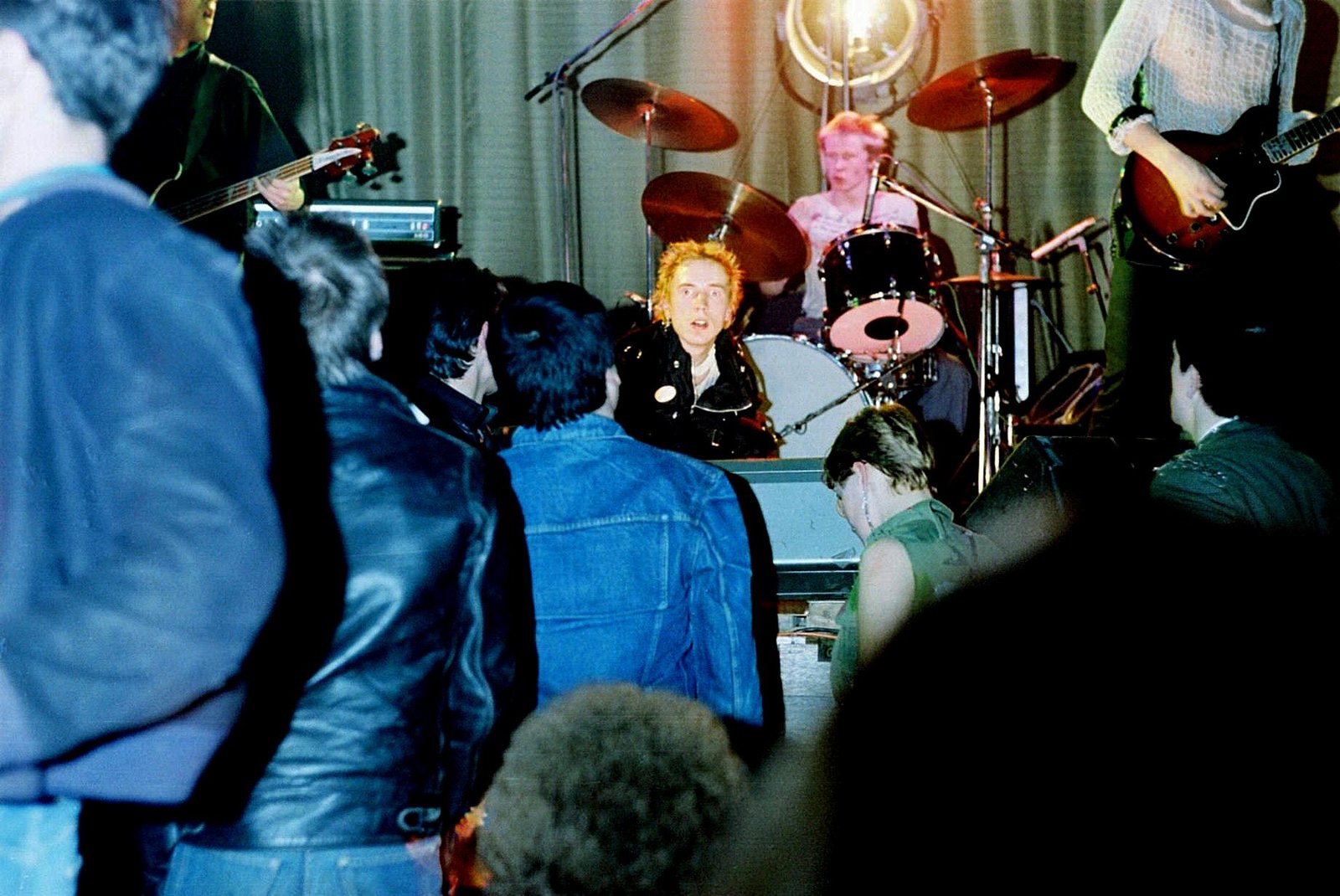 When Johnny, Glen, Steve and Paul sliced through the crowd (no folding lotus stages for them ... yet), bounded up the steps and roared straight into Anarchy in the U.K., the kids knew just what to do because they knew the song. They sang along and jumped and bumped me back into the unreceptive arms of the national daily press photographers, one of whom was trying to take his pix with his hands over his ears (try it sometime).