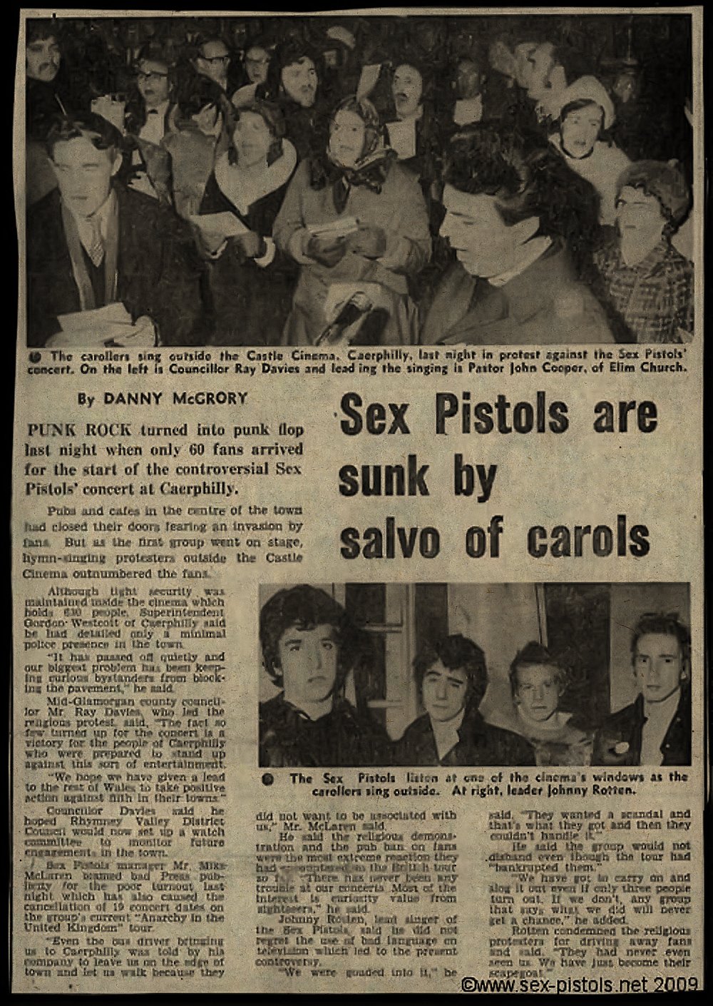 The Pistols themselves, while not denying that damage had been caused in the toilet, said that there were no lights and they couldn’t even see where to piss. They were also highly suspicious of Mr Collins’ motives for cancelling the gig.