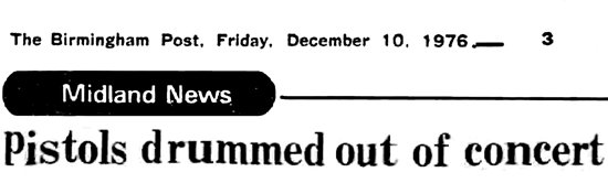 He reminded readers that the Town Hall booking had already been cancelled by Coun. Edward Hanson, chair of Leisure Services, who declared the Pistols unfit after their notorious television appearance: “They will not subject the people of Birmingham to such unadulterated filth.” (Birmingham Mail, 13 December 1976).