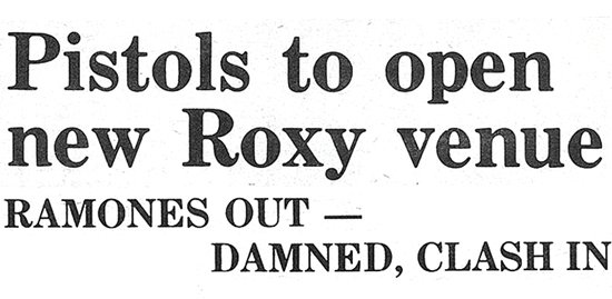 The Ramones have pulled out of the big punk-rock package tour, in which they were to have co-headlined with the Sex Pistols. As a result the whole tour has now been completely revamped. It will be going ahead from the beginning of next month with the Pistols as sole bill-toppers – supported by two other fast-rising British punk bands, The Damned and The Clash, plus American outfit The Heartbreakers fronted by former New York Dolls member Johnny Thunders.