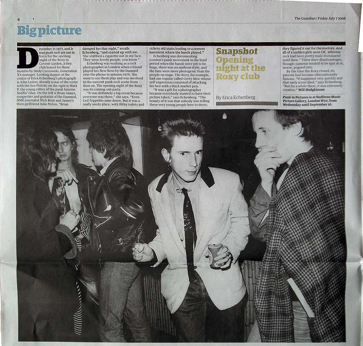 of articles, magazines and other from the Roxy gig to the White Riot Tour