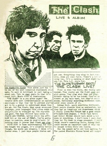 Mark Townsend - A page from the electric circus fanzine reviewing the gig....my uncle Chris used to distribute this around Manchester...he Missed the clash but was there for Wayne county the week after and Warsaw the week after that.