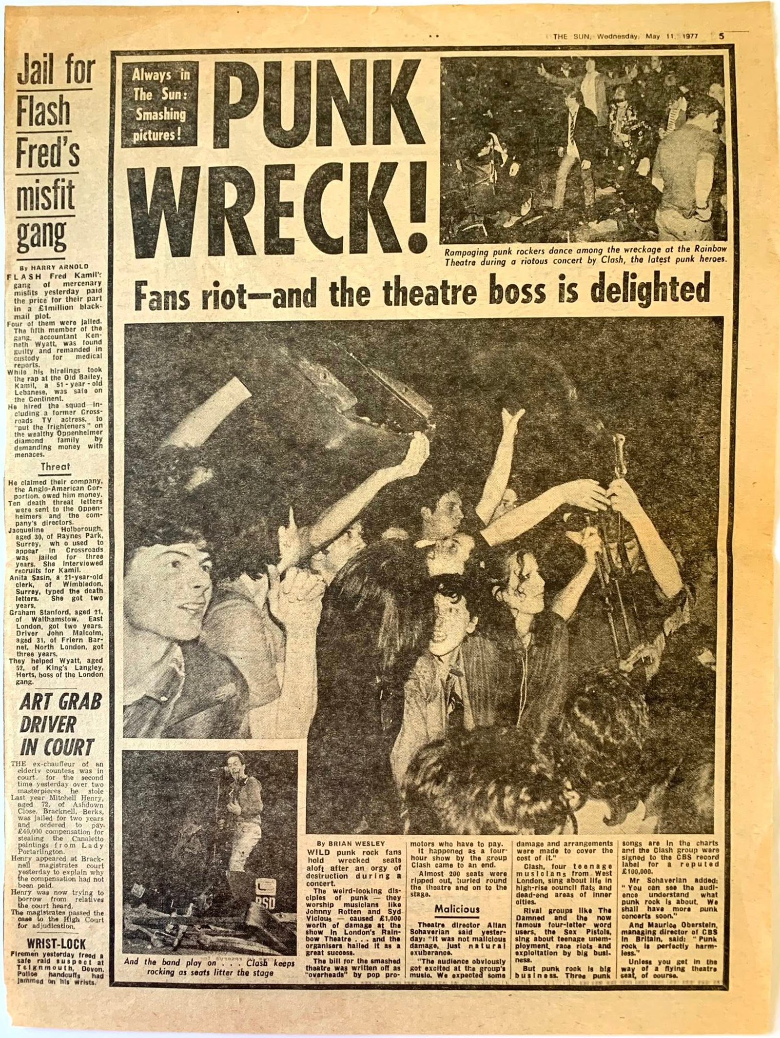 The Clash's concert at the Rainbow Theatre on May 9, 1977, was described as a riot in the press, but the response after the event was mixed. Some observers saw it as a reflection of the turbulent times and the punk movement's response to social discontent.