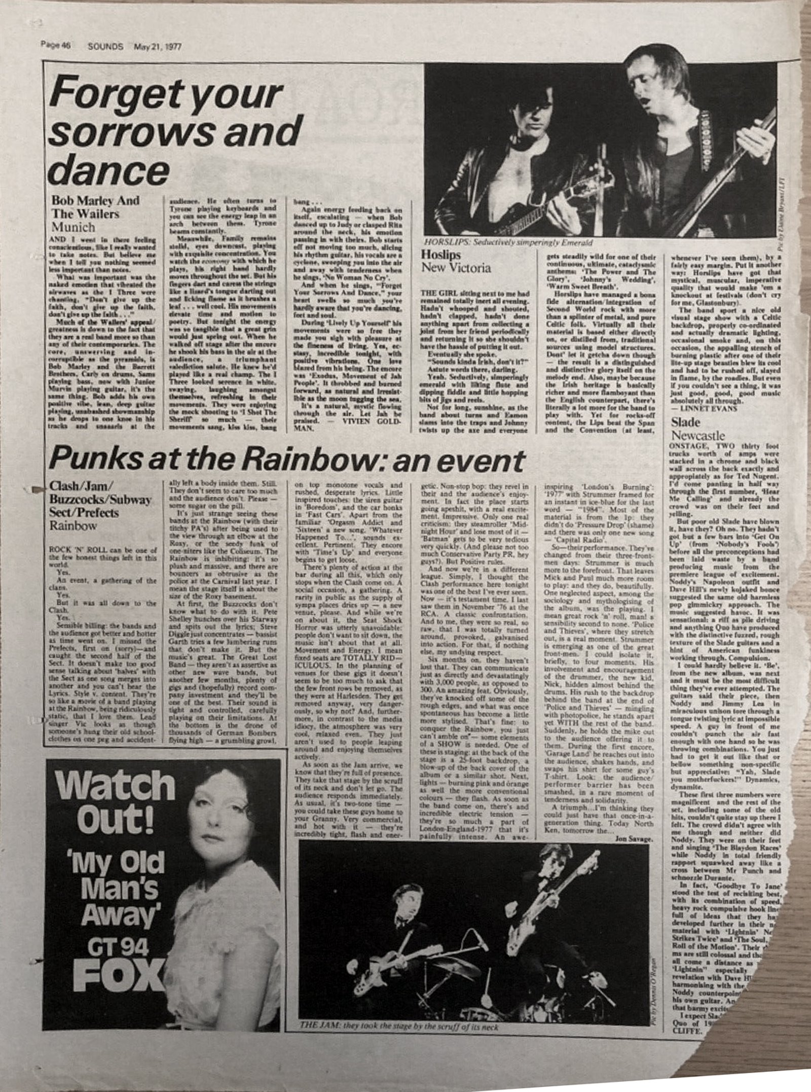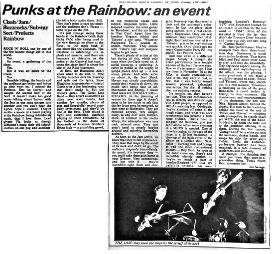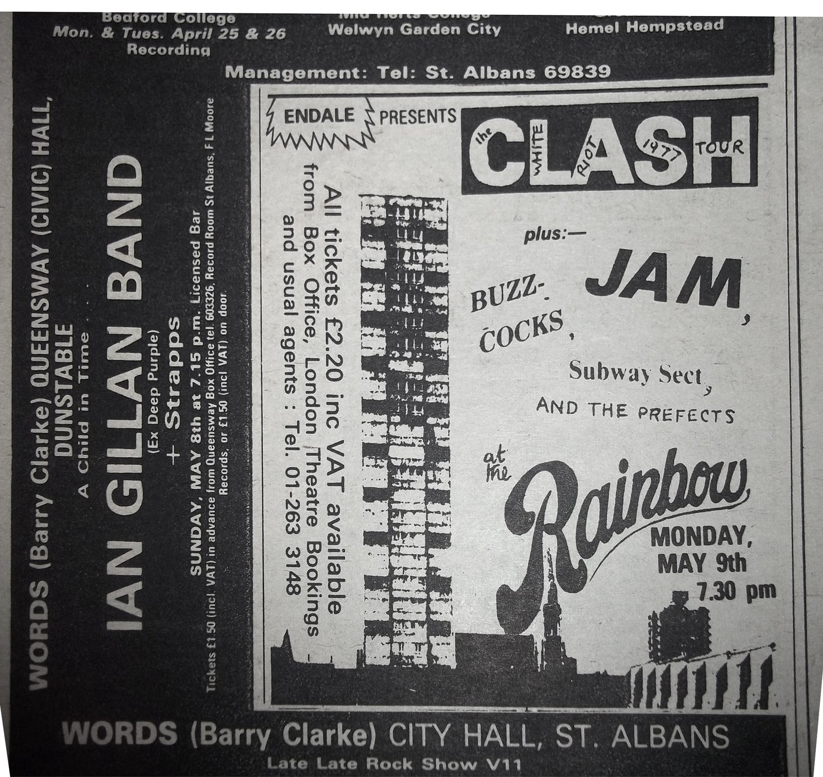 Andy Fair - Saw The Clash at The Rainbow May 77. the buzzcocks .subway sect the jam the prefects. .all in support. .the clash rocked N4 that night .seats ripped out .after white riot