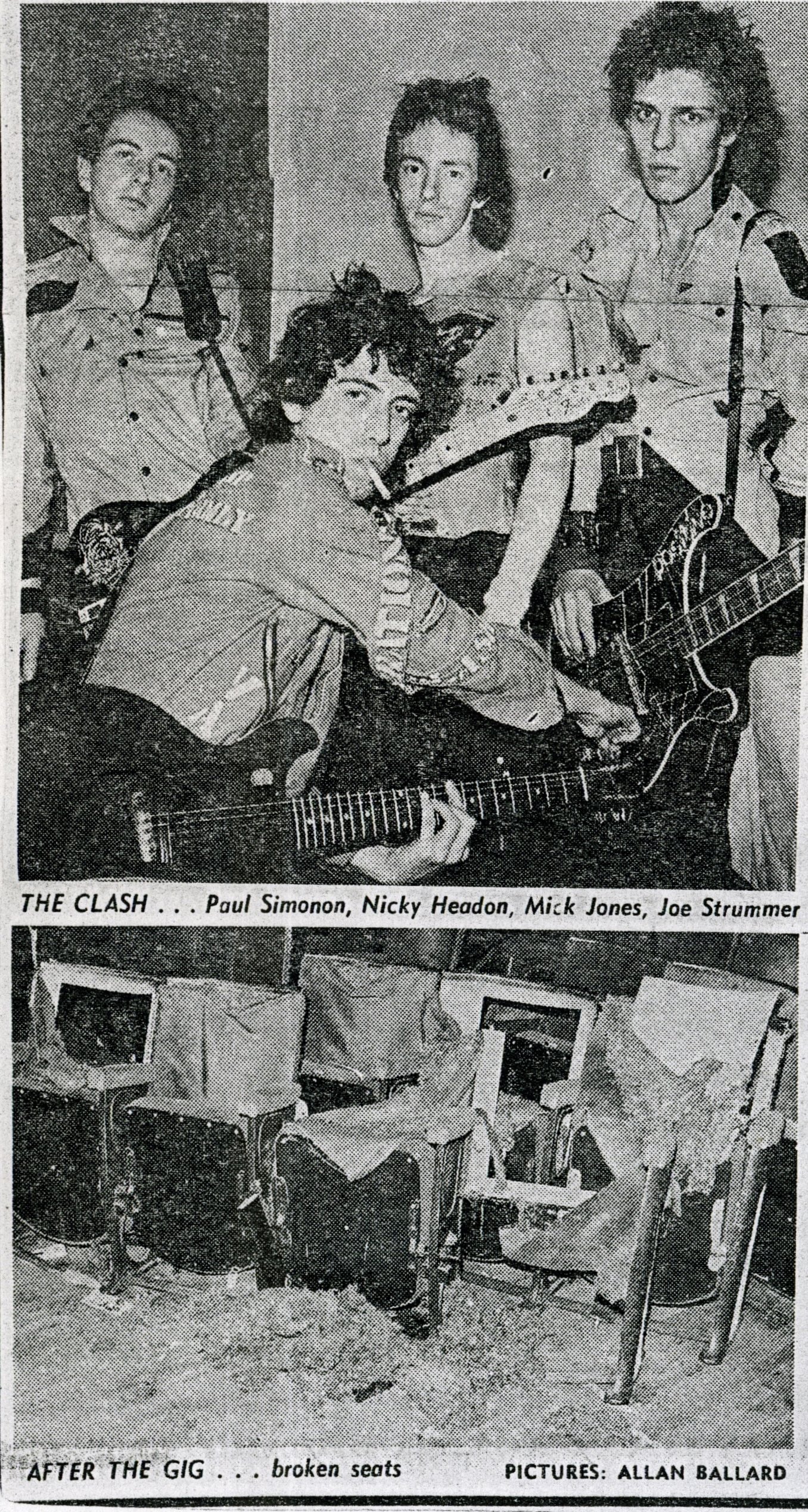The famous riot gig in which 200 seats were ripped out. Ecstatic fans could not sit down and as the Jam finished their set the mayhem began. The Clash opened with Londons Burning and fighting broke out.
