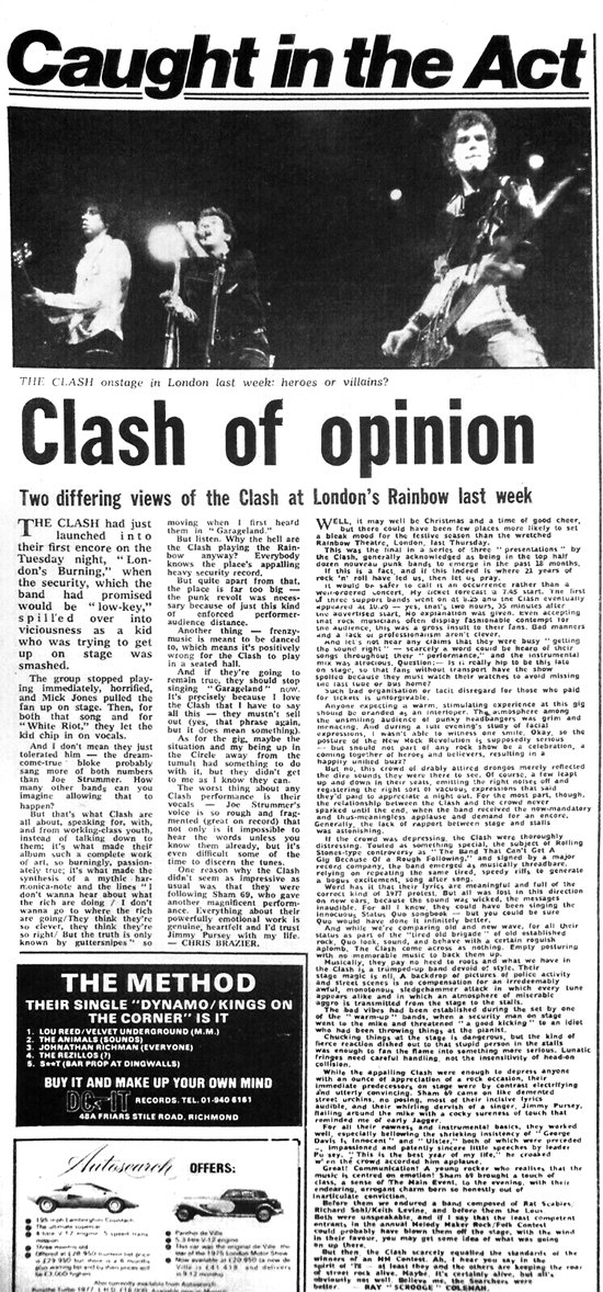 Reference: Spencer, N. (1977, May 21). Is This What We Ordered? / Clash Trash Backlash. New Musical Express, pp. 7-8.