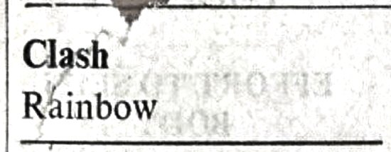 CLASH: London Rainbow. Mon- day, May 9. Starts 7.30pm. Support: Subway Sect. Tickets £2.20.