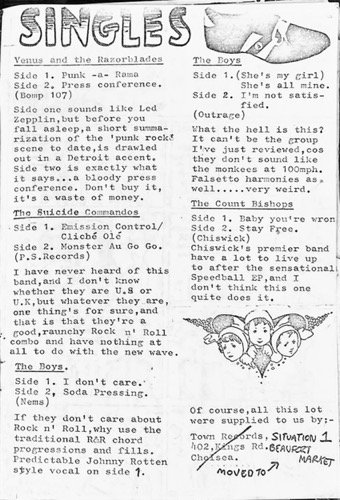Footnotes: The back cover advert for 'Seditionaries' was commissioned by Vivienne Westwood. Mark does not recall the shop ever doing any other press, fanzine or otherwise, so he took this commission as quite an honour. The Clash live review at The Rainbow is by early Punk fan Gary Kemp, later of Spandau Ballet.
