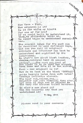 CULTURE TIME . New Wave - Punk , How original is it? Is it for white or black? For one or for all? If we could begin to understand it, then, as philosophy tells us, We could begin to understand ourselves .
