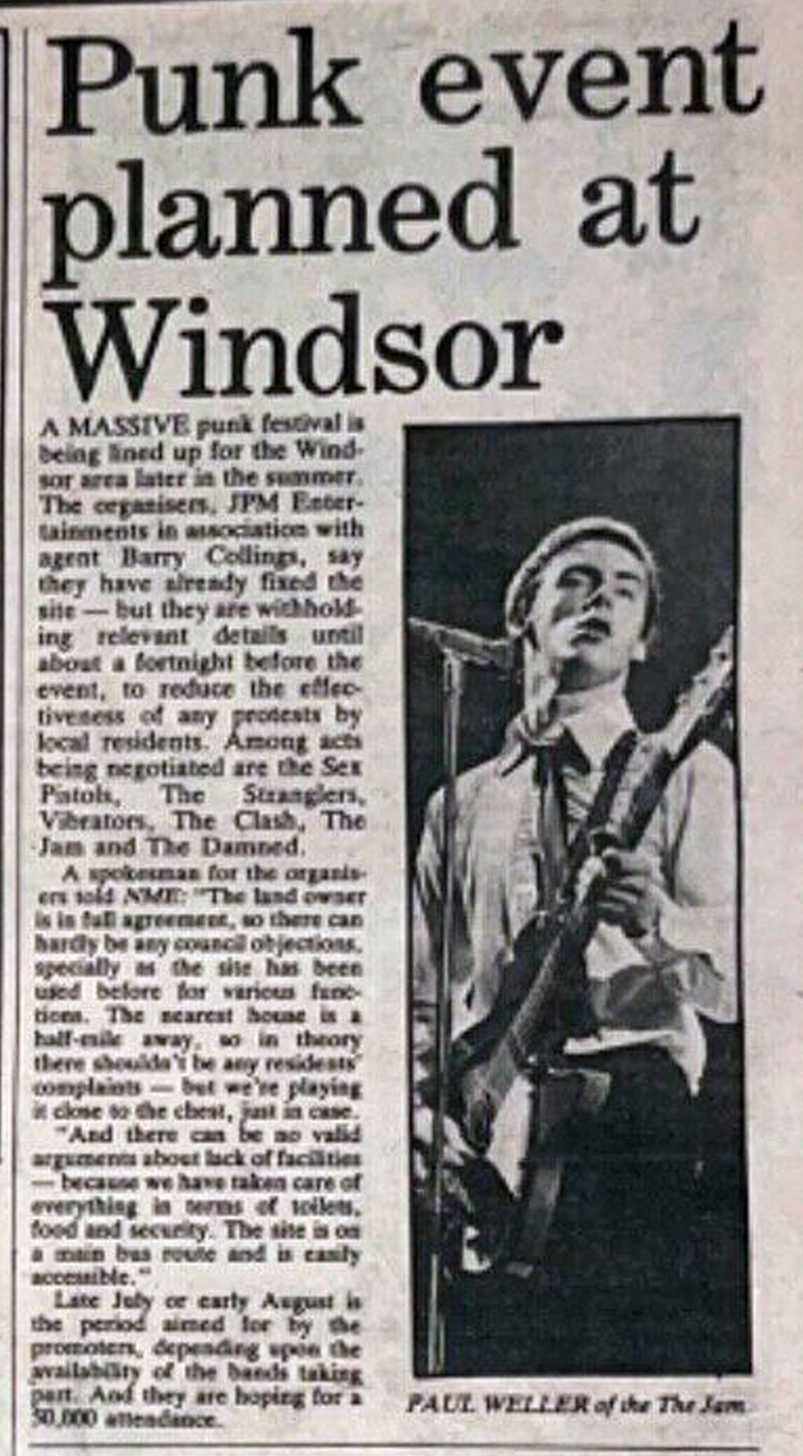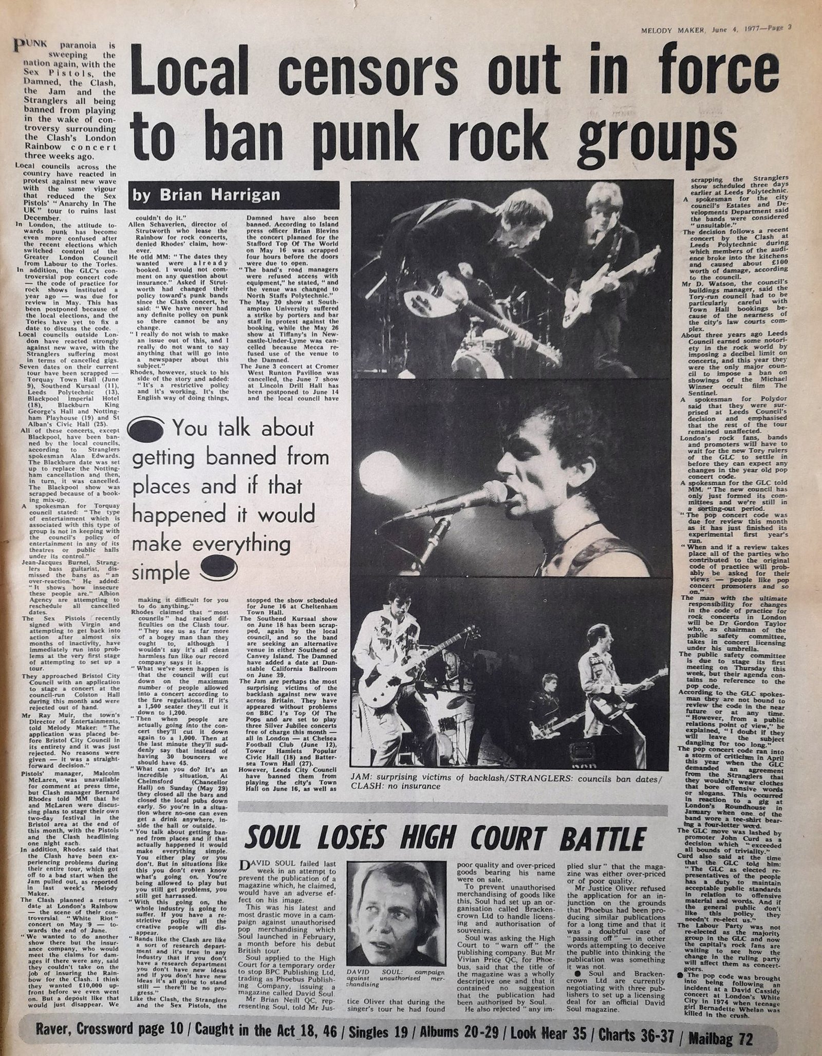 Photo: JAM : surprising victims of backlash/ STRANGLERS : councils ban dates/ CLASH : no insurance