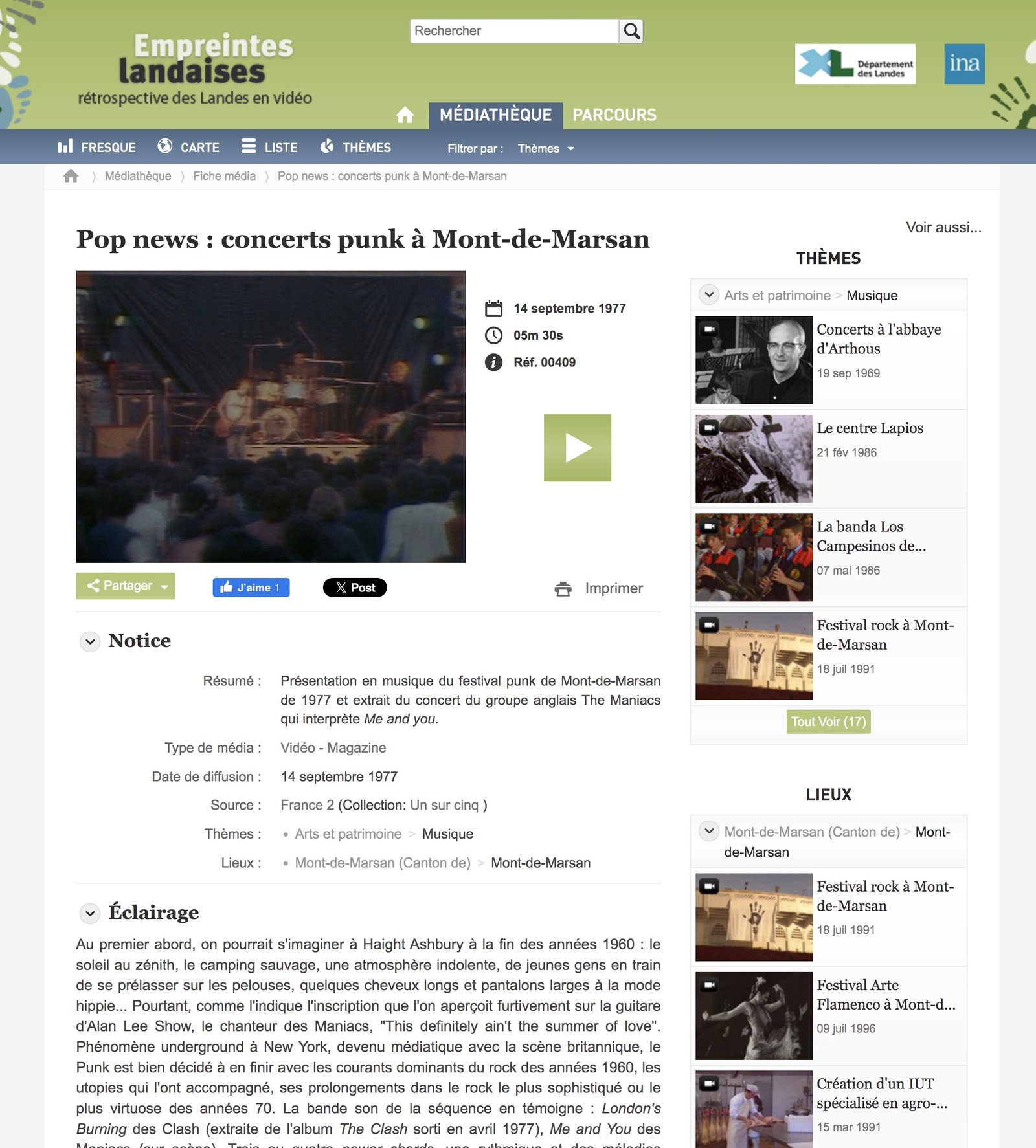 00:03:15 - 00:03:42 But the arenas had remained rather empty, probably a little too far ahead of fashion. Punk had not yet found its audience in France. But for this 1977 edition, there is now a crowd. It must be said that the organisers of the Mont-de-Marsan Festival are enthusiasts. Punk, they have known and listened to it for a long time, even before it was really called that. They simply said "rock" or "pub rock" when it was played in pubs. Logical.