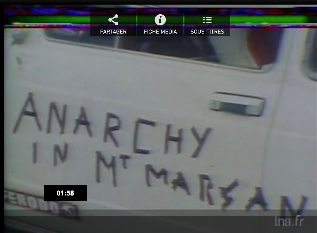 00:02:37 - 00:03:02 It has now been two days that Gйrard has noticed these strange silhouettes in town. Gangs of young people with marginal looks have arrived and taken up residence at the Hфtel du Sablard, right next to the square, where he had indeed seen the posters plastered on the walls of the town announcing the Punk or Pink festival - nobody really knew how to say it at the time. And he is beginning to understand what it is all about…