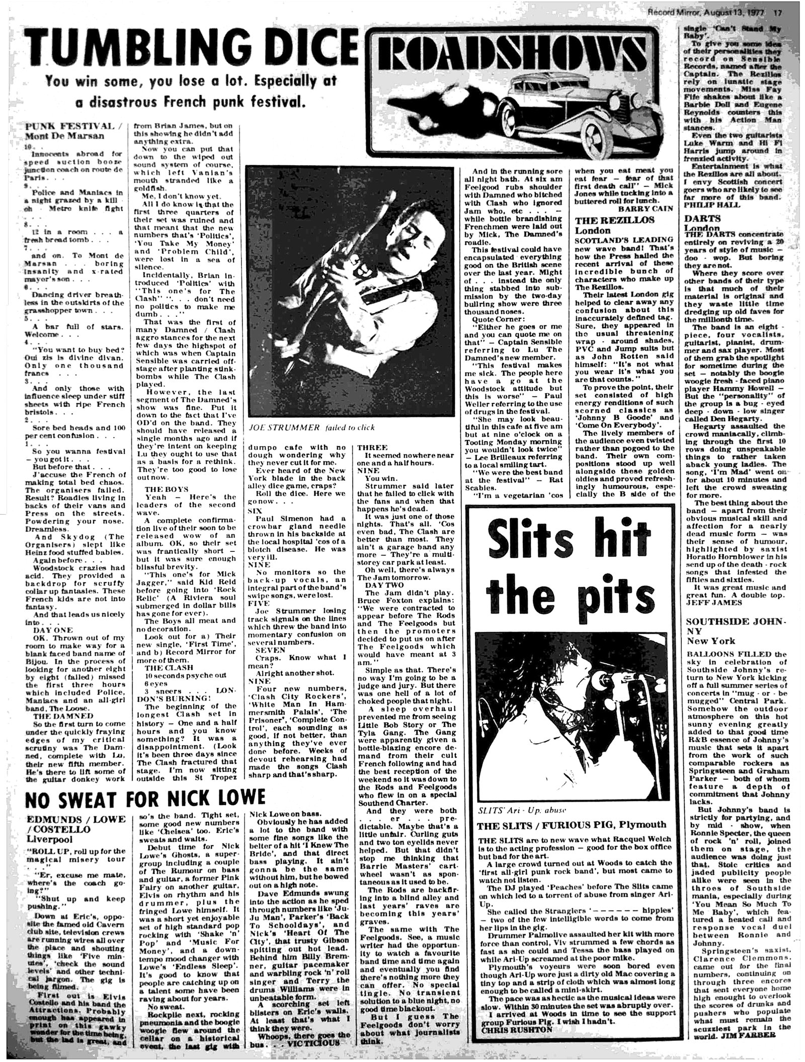 All the actors of the time nevertheless agree in saying that the leader of this adventure was indeed Marc Zermati, formerly founder of the French rock label Skydog Records, who died in 2020. It was he, mainly supported by Andrй-Marc Dubos, Pierre Thiollay and Larry Debay, who transformed this trial run into a major event, later managing to bring together European heavyweights such as The Clash, The Police, Dr. Feelgood, and many others, on 5 and 6 August 1977.