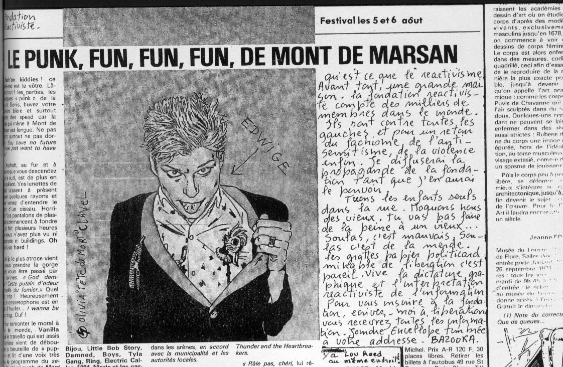 jeudi quand même je ne comprenais pas et me disent ici j'ai vendu tout le mascara des trucs pour les yeux tout pour les maquillages pour l'époque qu'elle a vendu d'état avait pas de trucs le festival les arènes de mont-de-marsan restera un événement mythique dans l'histoire du punk et dont la vie de cette tranquille préfecture des landes