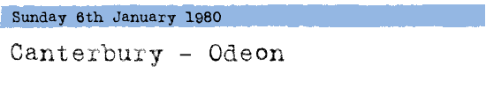 In January 1980, the Odeon Theatre in Canterbury was still operating as a cinema. The building, originally opened as the Regal Cinema in 1933, had been renamed the ABC in 1963 and was operating under that name in 1980 8.