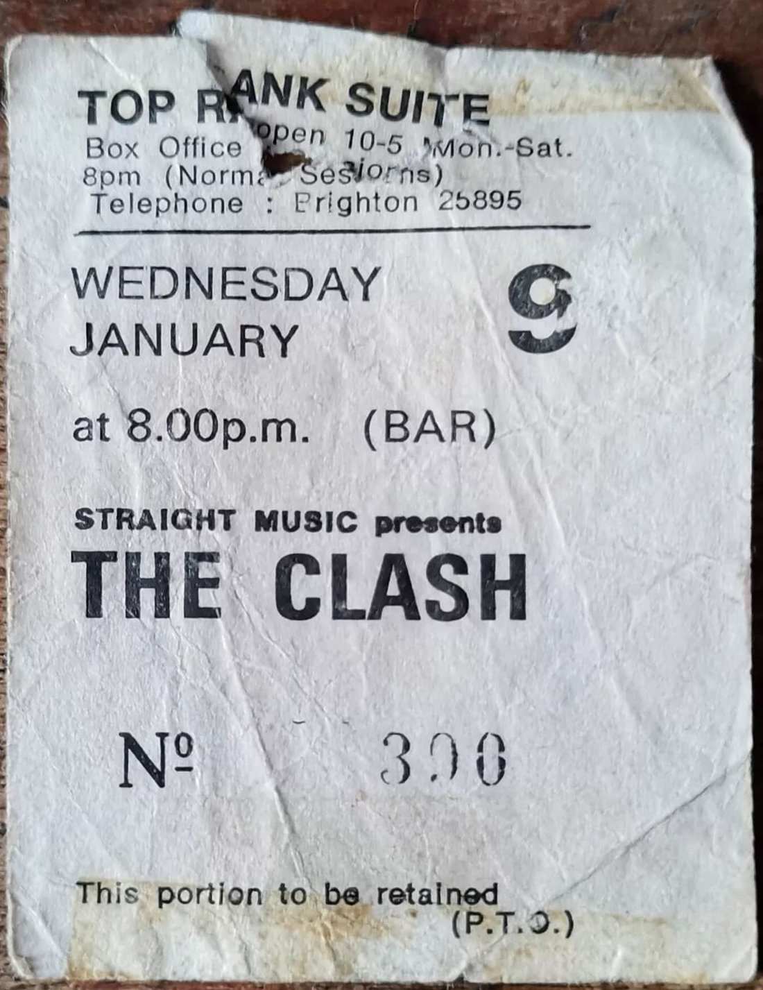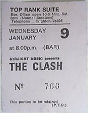 Robin Tate -- Tonight saw The Clash playing their 3rd gig of the 16 Tons Tour. Here's my original ticket [#339] I kept from the Brighton Top Rank, for this the 8th of January 1980. facebook