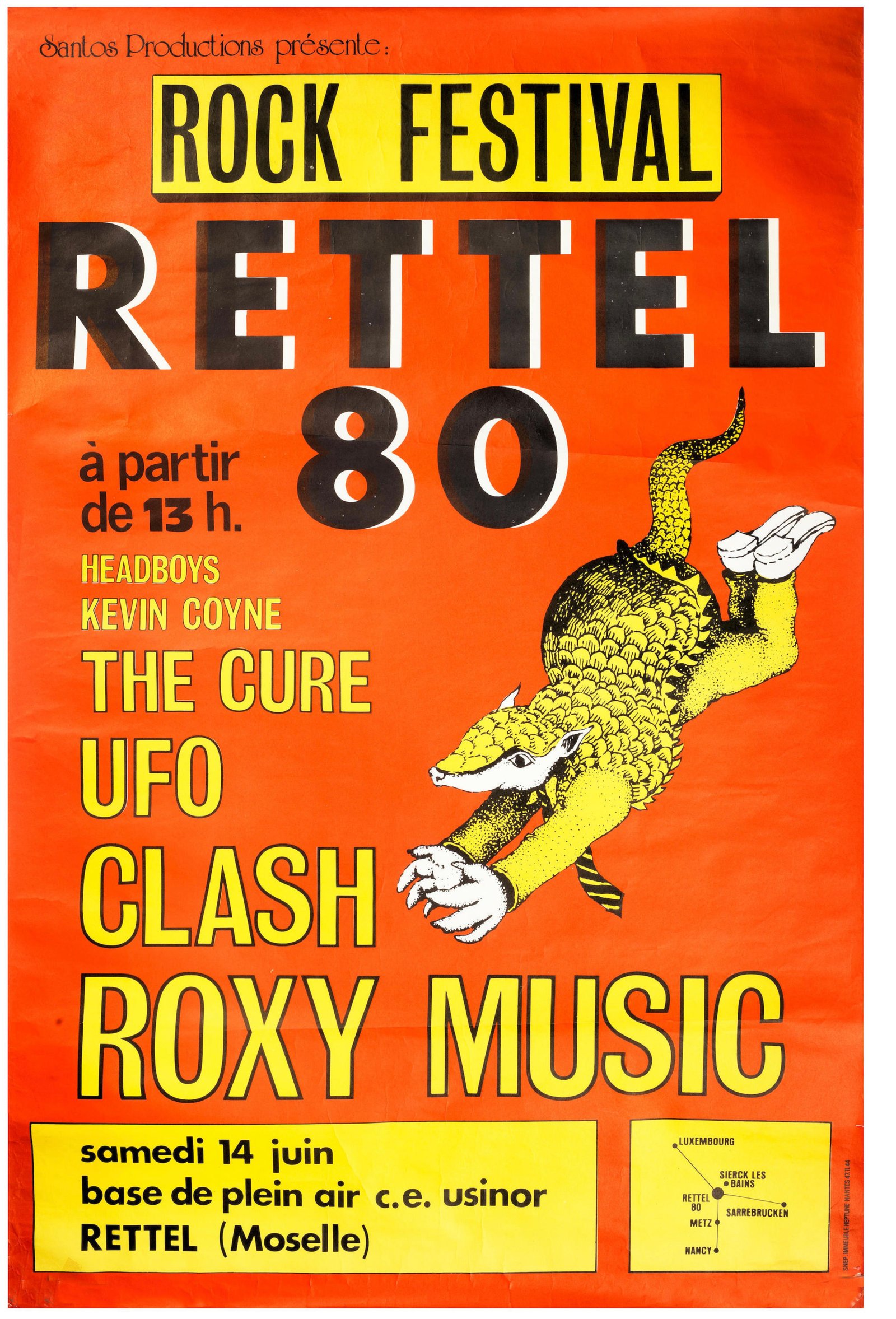 The Rettel Rock Festival took place on Saturday June 14, 1980 at the Usi-nor open-air base on the banks of the Moselle. The event has a prestigious poster: Roxy Music, The Clash and The Cure, a great evening in perspective.