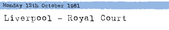 The Royal Court Theatre is an art deco Grade II listed theatre at 1 Roe Street, Liverpool built in 1938 after a fire completely destroyed the earlier building. Originally a popular home to variety shows in 1980 two former Liverpool taxi drivers took the Royal Court in a new direction, moving successfully away from traditional plays and instead transferring the focus to rock and pop concerts.