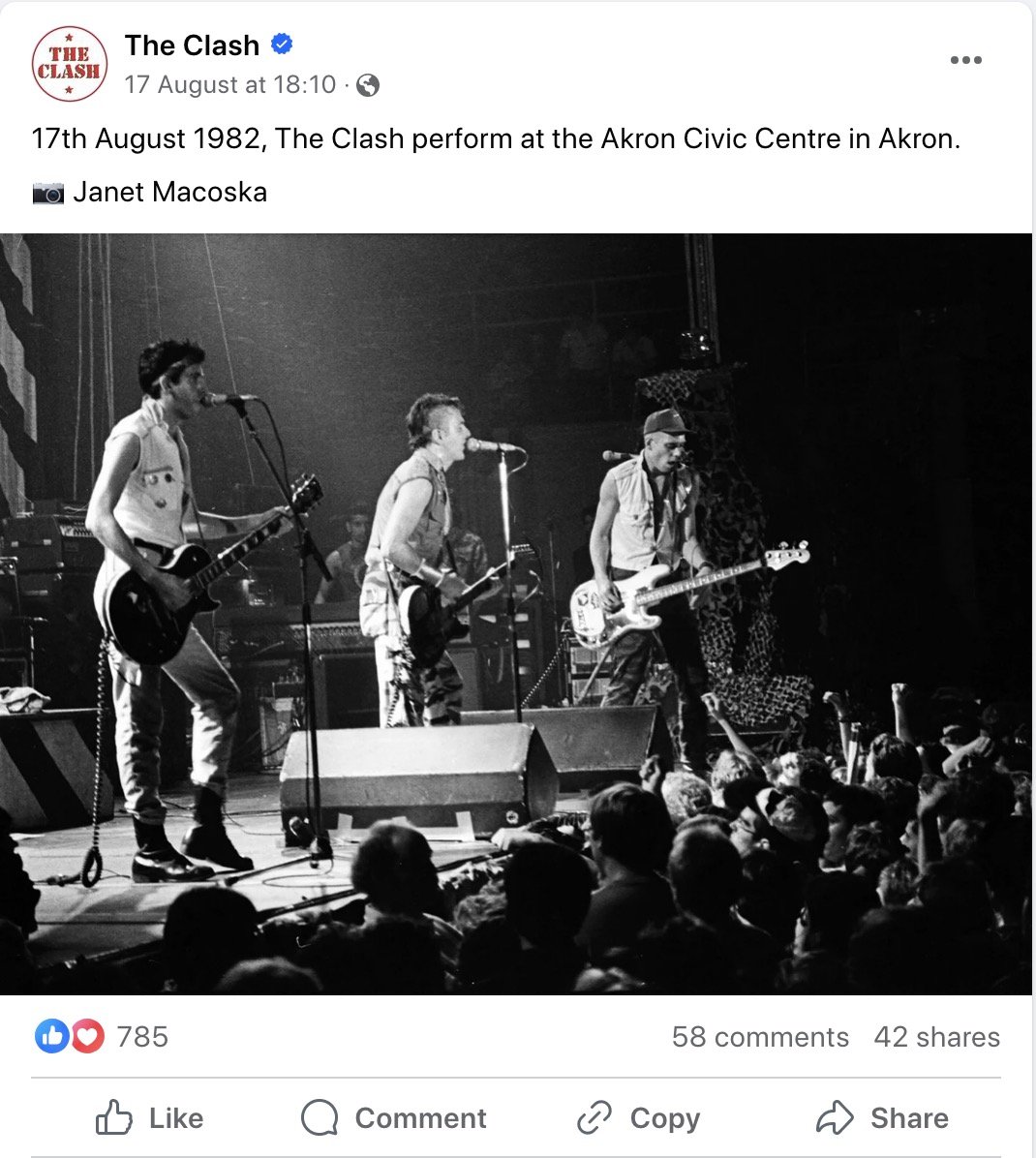 Facebook Page - for Clash Collectors to share unusual & interesting items like..Vinyl. Badges, Posters, etc anything by the Clash. Search Clash City Collectors & enter search in search box. Place, venue, etc