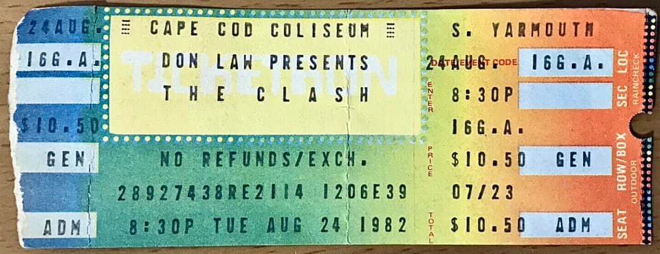 hitchhiked down that afternoon The Clash | Cape Cod Coliseum, South Yarmouth, Massachusetts. August 1982 | Instagram Waynon13 - Holy goddamn shit, I was at this show! Won tickets from a radio station and hitchhiked down that afternoon. @this.is.radio.clash camo netting and caution tape, front row! Spent the night in (long gone) HoJo's drinking coffee waiting for the bus home. Thanks for the memories.