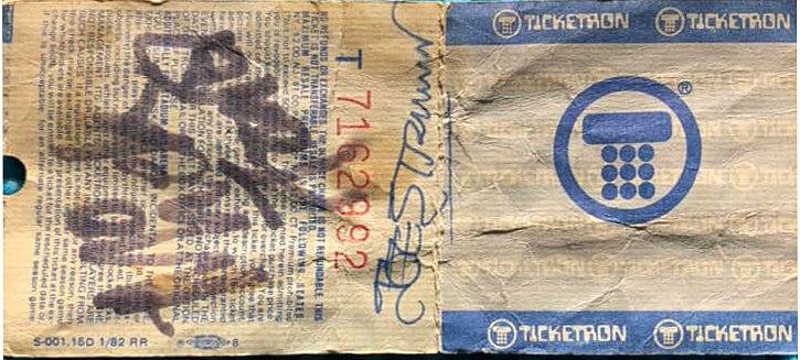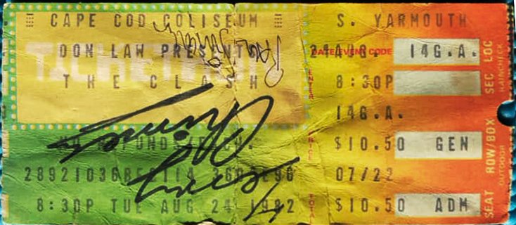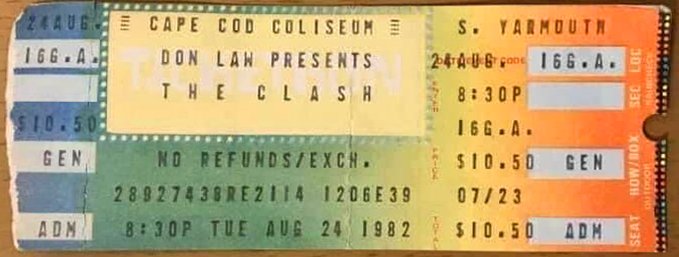 Robin Tate - I think this ticket is probably the last of three or four nights at the Cape Cod Coliseum, Hyannis for this the 24th of August 1982 as part of the Clash’s Combat Rock US Tour ( they had different Support bands on each of the nights, i think tonight it was Jerry’s Kids ?)