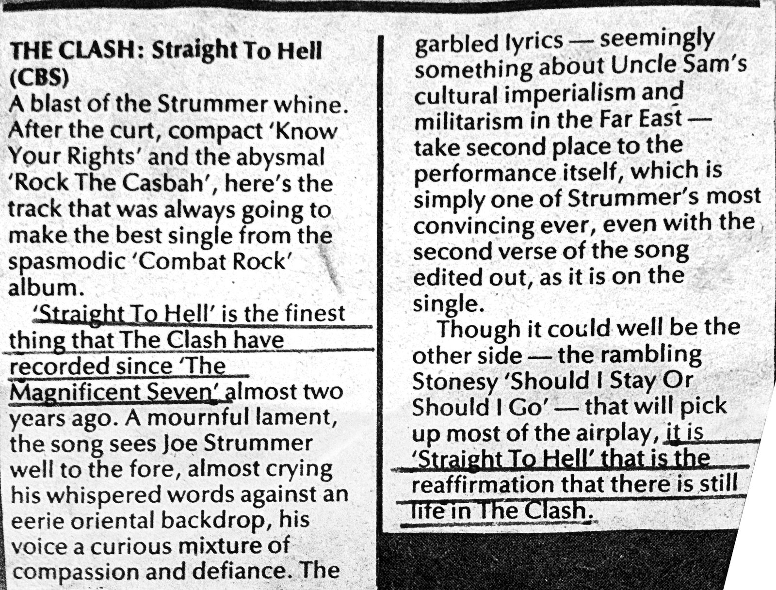17th September 1982, "Straight to Hell" is released as a single, with "Should I stay or Should I Go" on the b-side