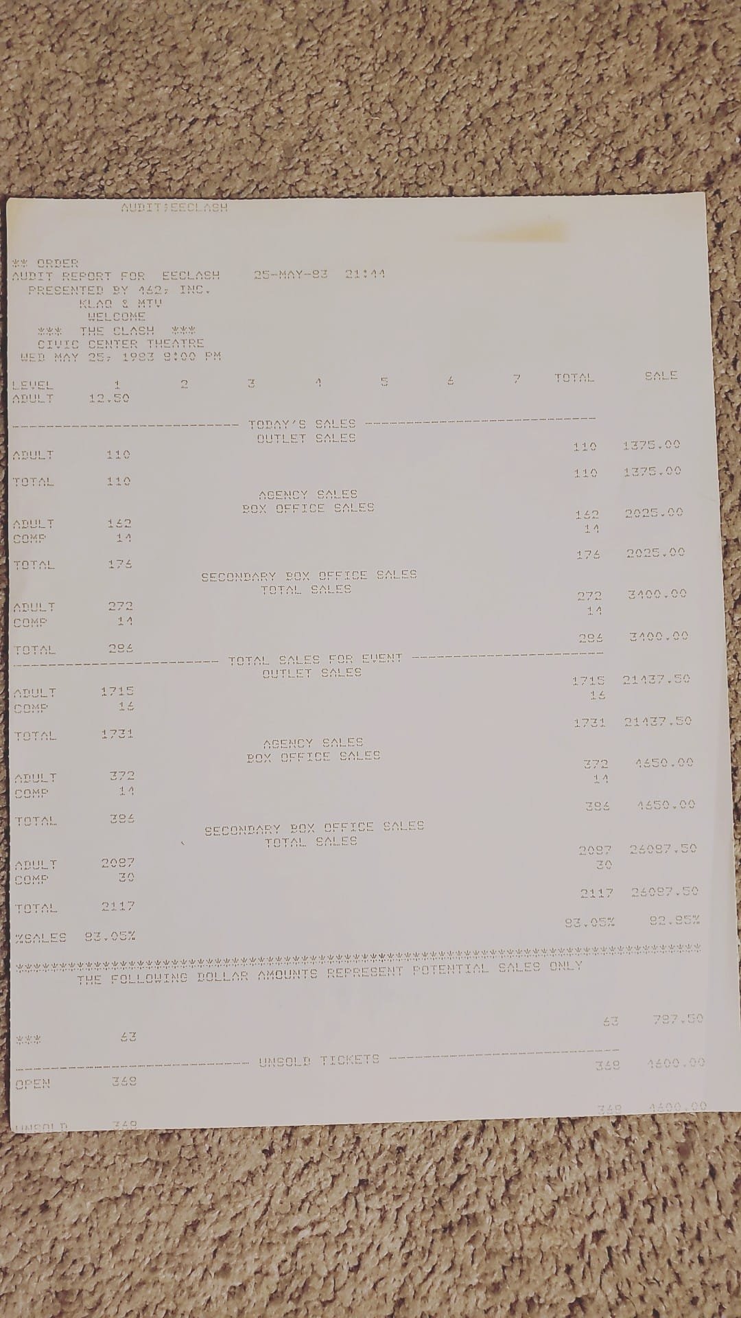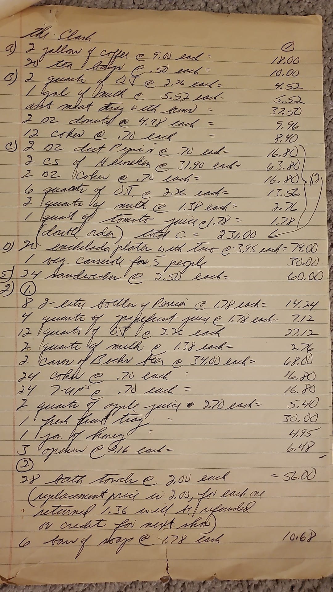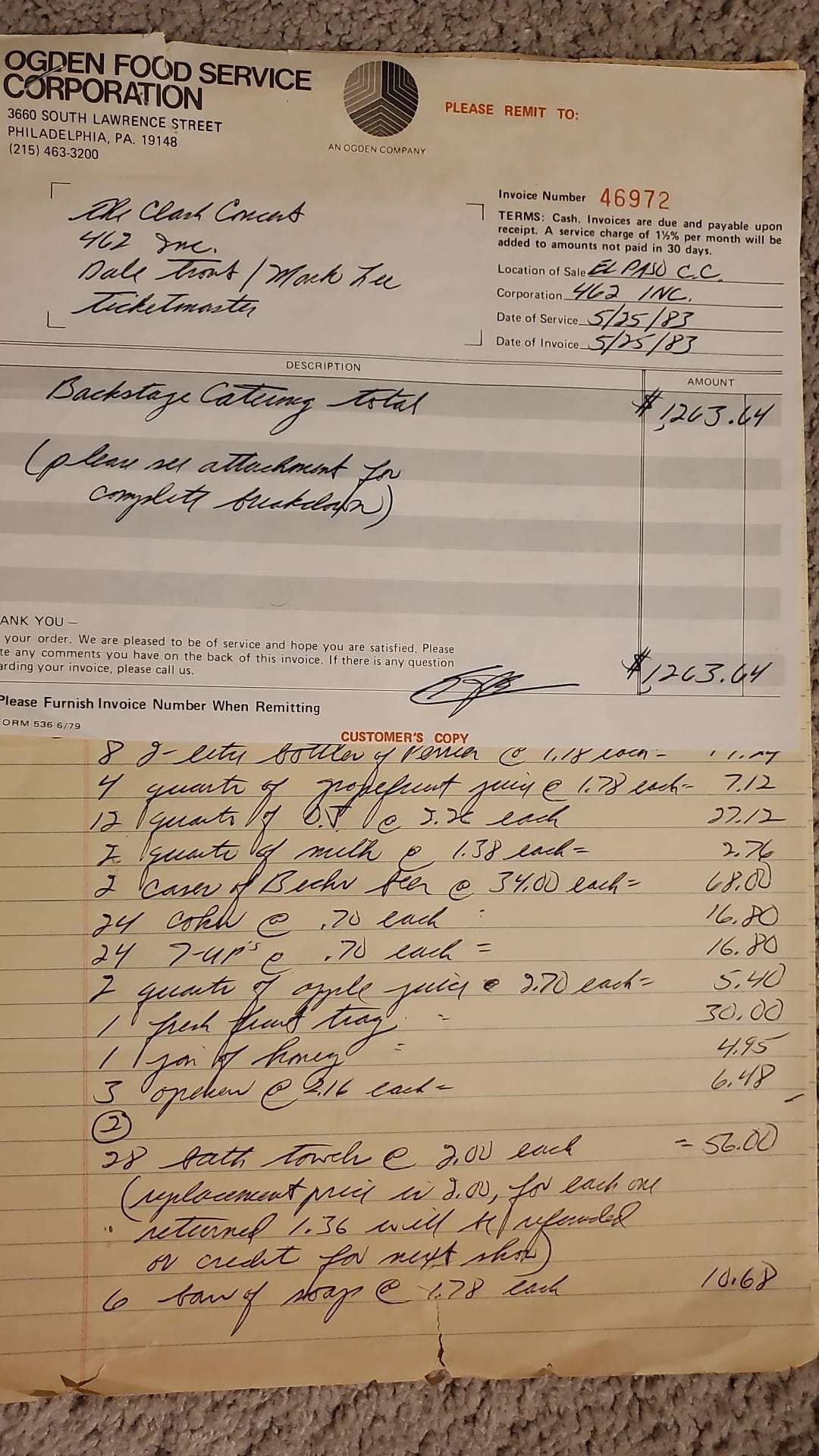 This is the backstage catering itemized bill for The Clash May 25, 1983 show in Texas. El Paso - Link