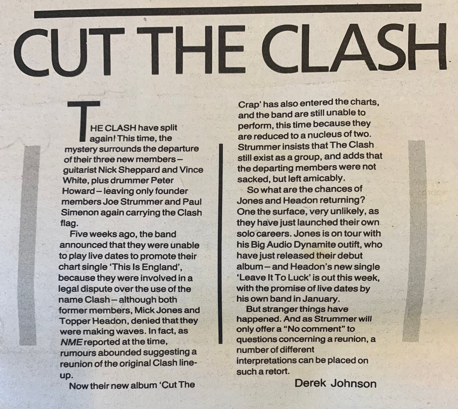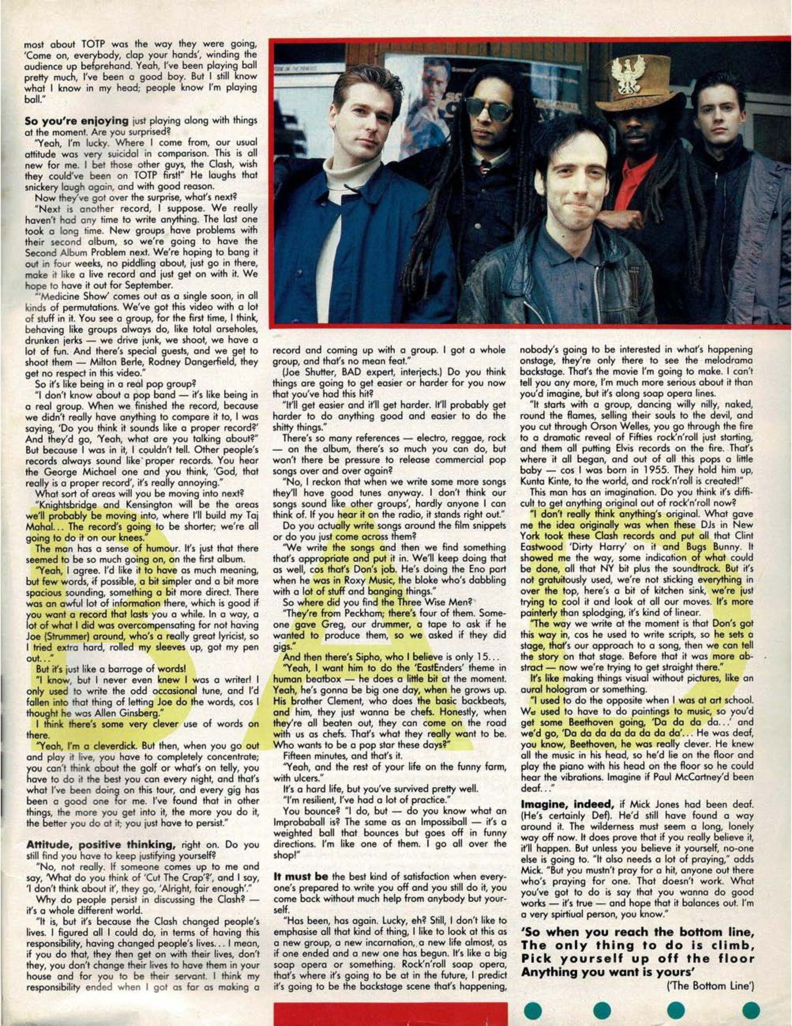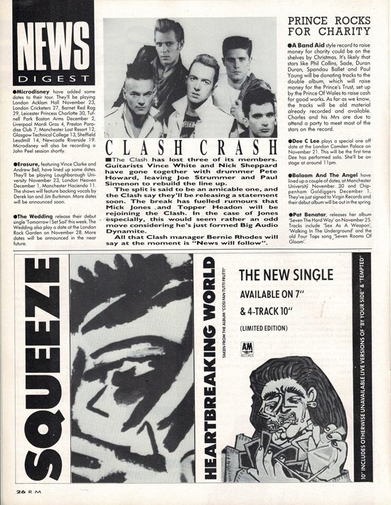To me, a really important thing was from seeing you, I had a particular image of The Clash, then you had that really good piece in the NME, with Tony Parsons - The Circle Line interview - that seemed to change it into something a lot more sociological, more to do with high-rise and tower blocks.